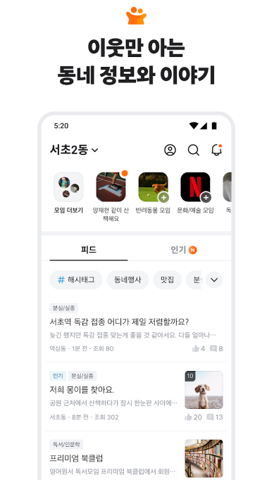 당신 근처의 동네 커뮤니티. 중고 거래부터 동네 정보까지, 이웃과 함께해요. 가깝고 따뜻한 당신의 근처를 만들어요.