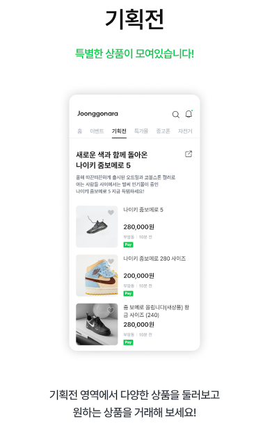 - 중고나라에서는 전국 단위 희귀 상품 탐색과 비대면 거래를
