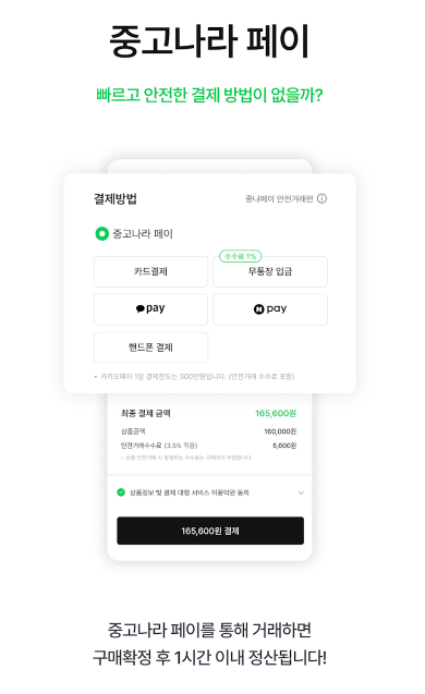 - 중고나라는 최근 자체 안전결제 시스템을 도입해 사기 예방 노력 중