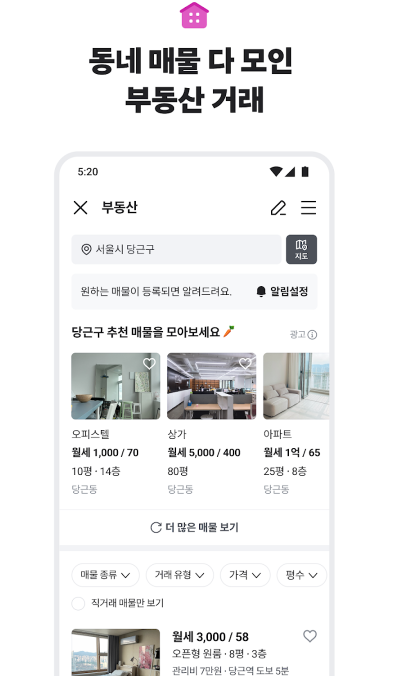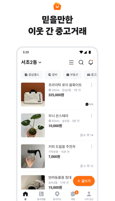 중고 거래부터 동네 정보까지, 이웃과 함께해요. 가깝고 따뜻한 당신의 근처를 만들어요.